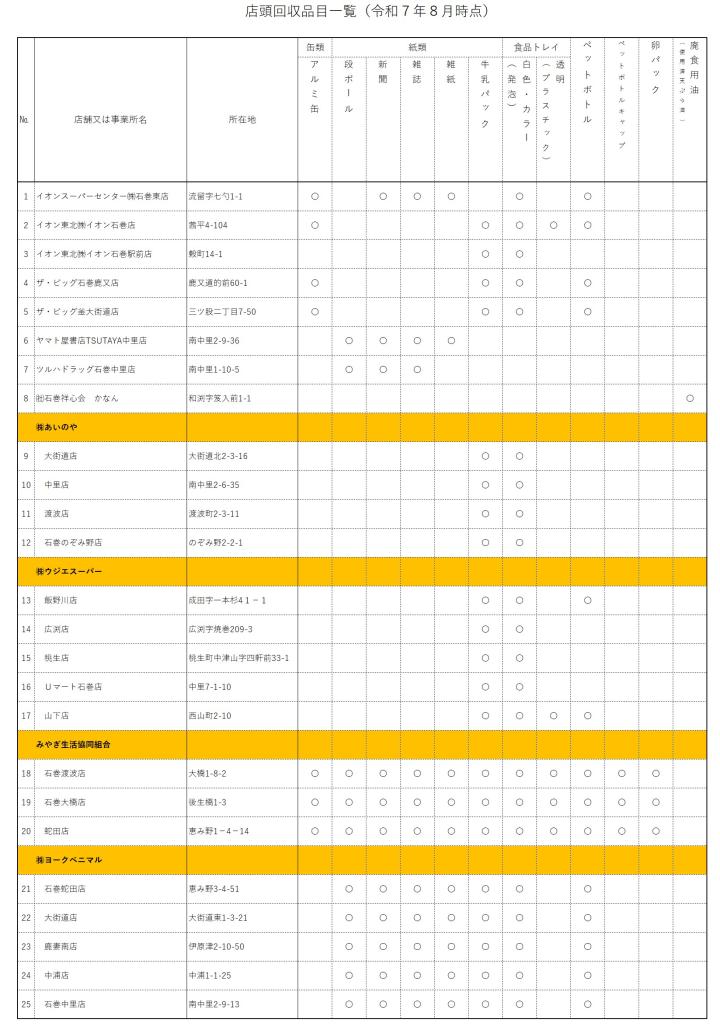 ここで紹介している店舗等のほかにも、店頭回収を実施しているお店等がありますので、ぜひご利用ください。