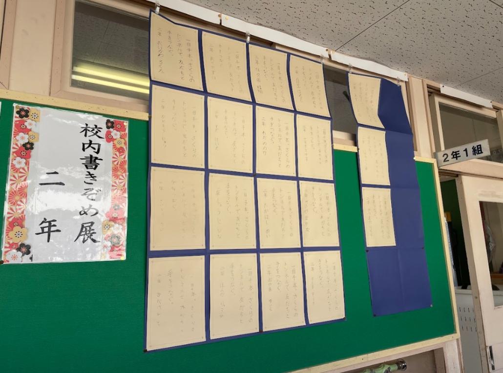 鹿妻小学校の子どもたちが一生懸命に書いた作品は,各学級の廊下に展示してあります。