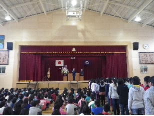 本日(3月24日)、体育館で平成26年度修了式が行われました。