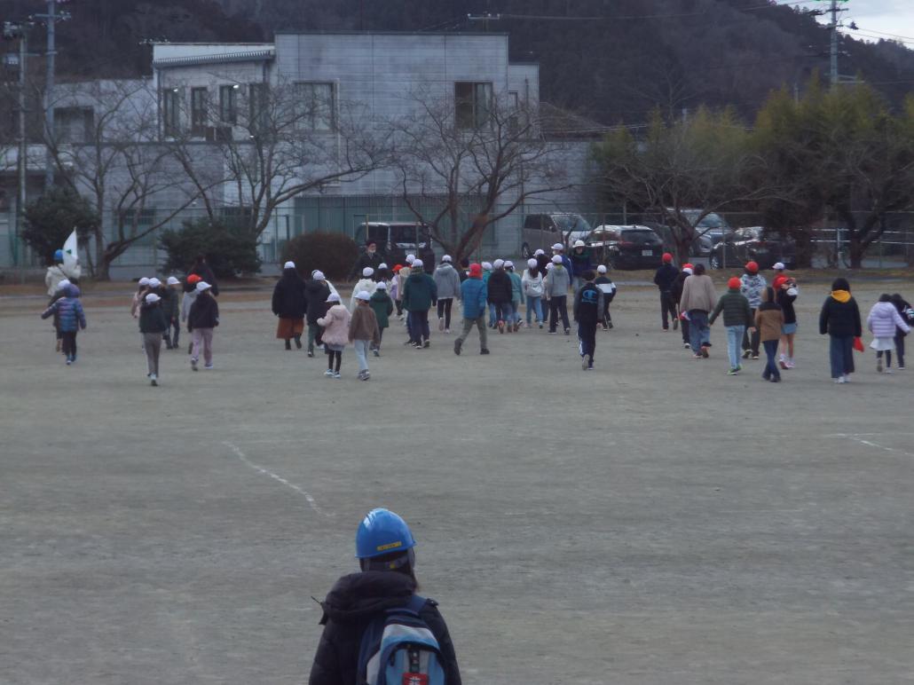 今回の避難訓練は、業前に縦割り活動を行っている際に大きな揺れを感じたという想定で行いました。子どもたちには、いつ何時でも対応できる力を身に付けるとともに、教員も短い時間で避難を完了させ人員の確認ができるための訓練でした。児童は指示に従い短時間で動くことができました。今後反省をもとに、より適切な避難行動が児童も教師もできるように改善していきます。