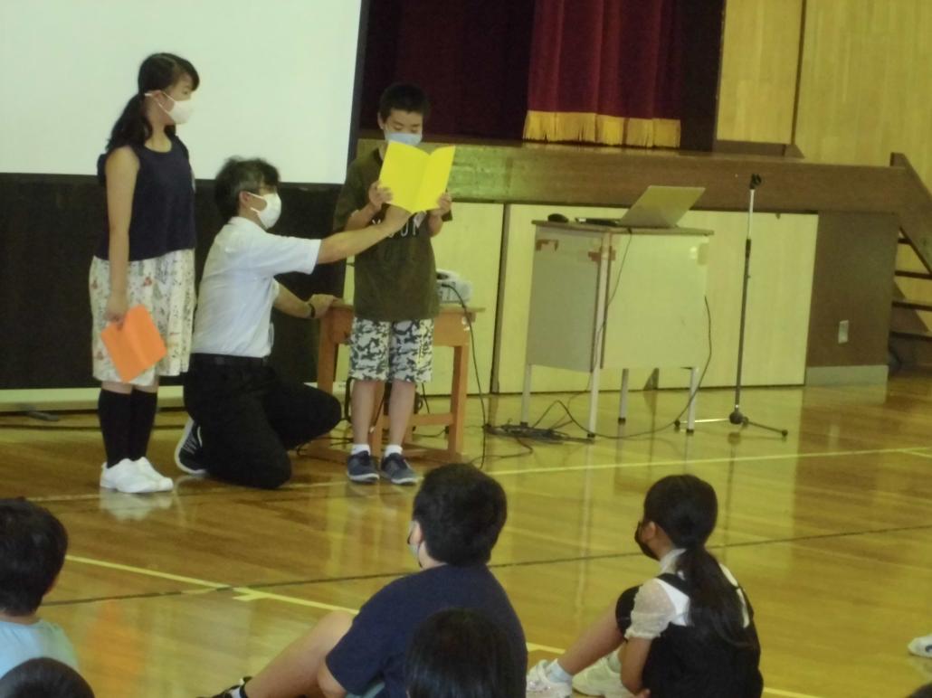 なかよし学級の児童と、6年生児童の発表では、1学期の学習や生活を振り返り、堂々と発表していました。